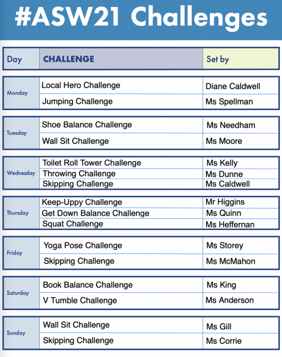 Teachers at St George’s have come up with some fun physical activity challenges for you to try out during Active School Week 2021.